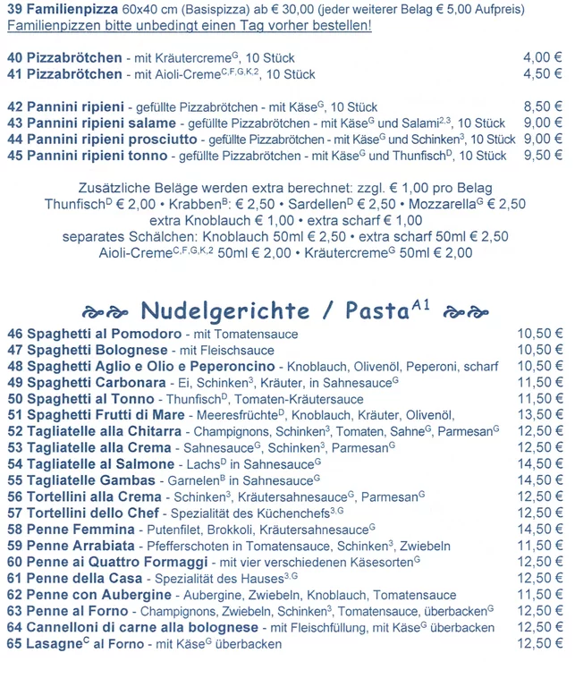 Familienpizza mindestens einen Tag im Voraus zu